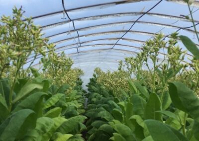A szántóföldi kísérleteket között beállításra kerültek kisparcellás és nagyparcellás virginia és burley kísérletek. Az idei évben üzemi fajtakísérletbe a virginia fajtacsoportból a Vj 23, Vj 24 és a Vj 25 fajtajelölt került, a burley esetében a Pj 15.